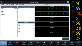 сводка ЭКГ за 24 часа, включая: статистику частоты сердечных сокращений, статистику событий аритмии, статистику изменения QT/QTc, статистику максимума и минимума ST для каждого отведения, статистику ЭКС, типичную временную диаграмму ЭКГ