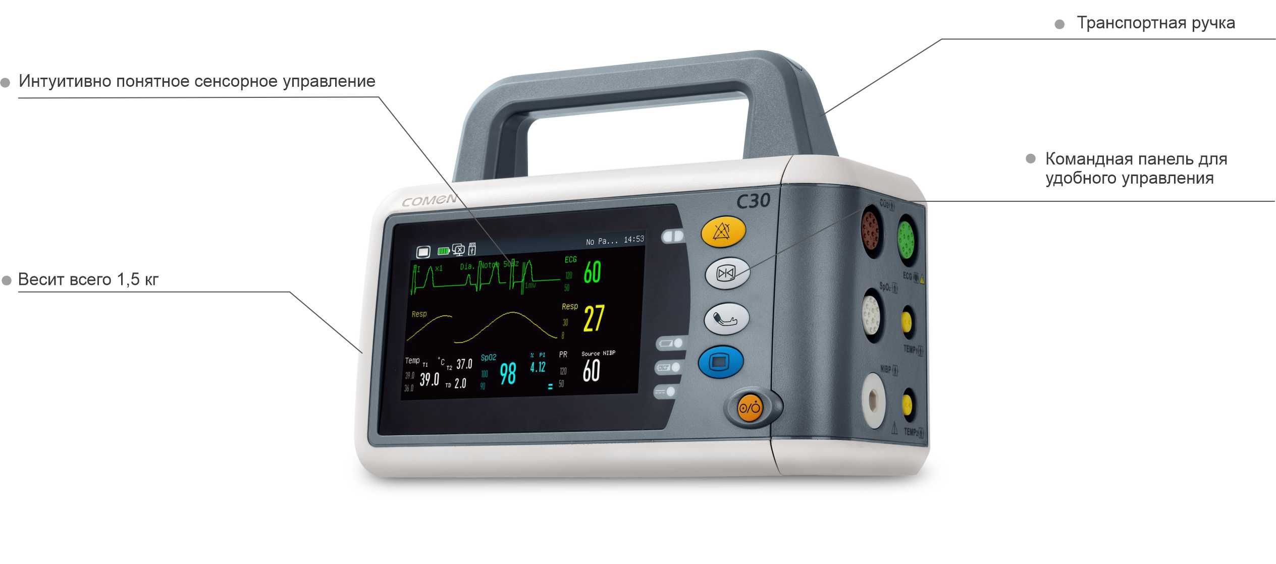 Ветеринарный монитор COMEN C30-V — это устройство, предназначенное для мониторинга жизненно важных функций животных.